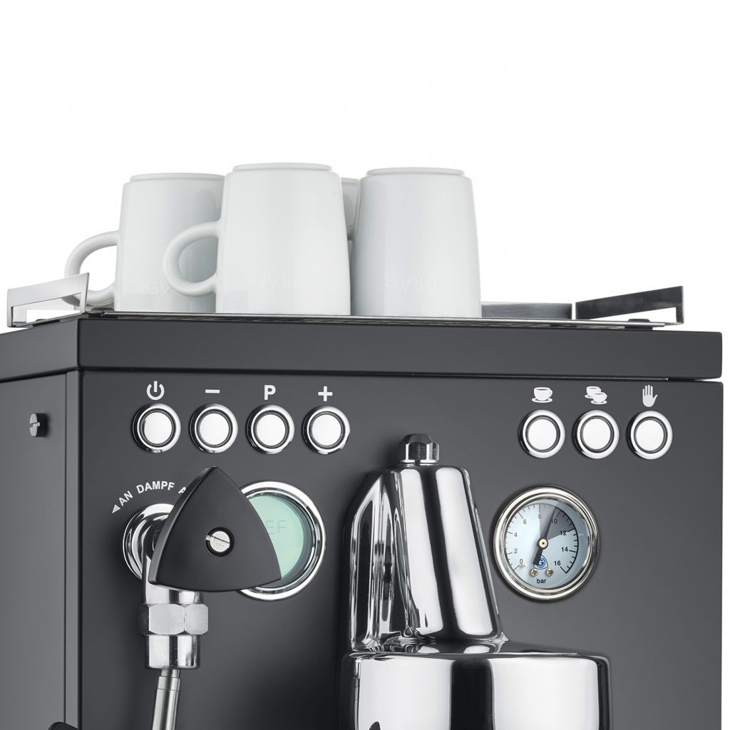 Die GRAEF Batessa ist eine hochwertige Siebträger-Espressomaschine mit Duo-Thermoblock-System, PID-Steuerung, vielfältigen Vorbrüh- und Dampfprogrammen sowie einer professionellen Dampflanze. Sie bietet präzise Temperatureinstellungen, ein intuitives Display und ist kompatibel mit E61-Präzisionssieben. Optional sind edle Gehäuseapplikationen erhältlich.