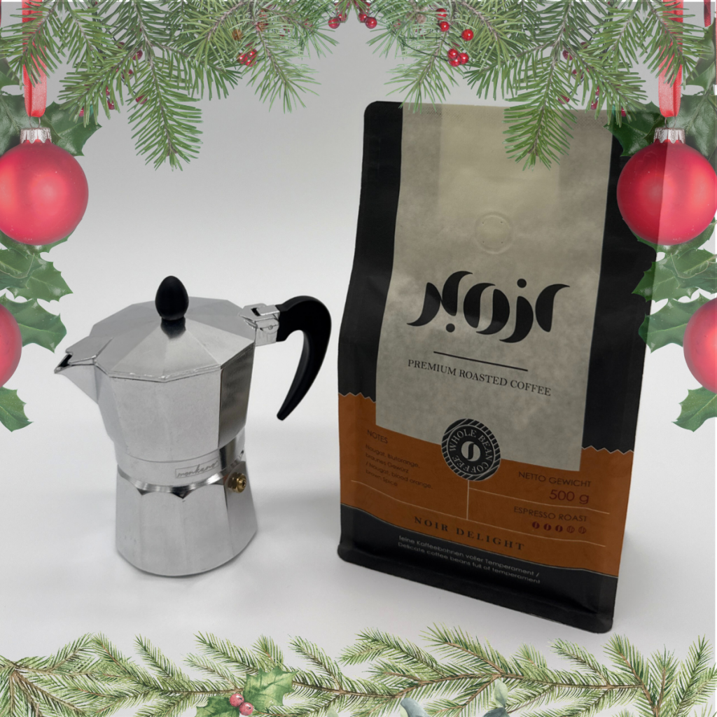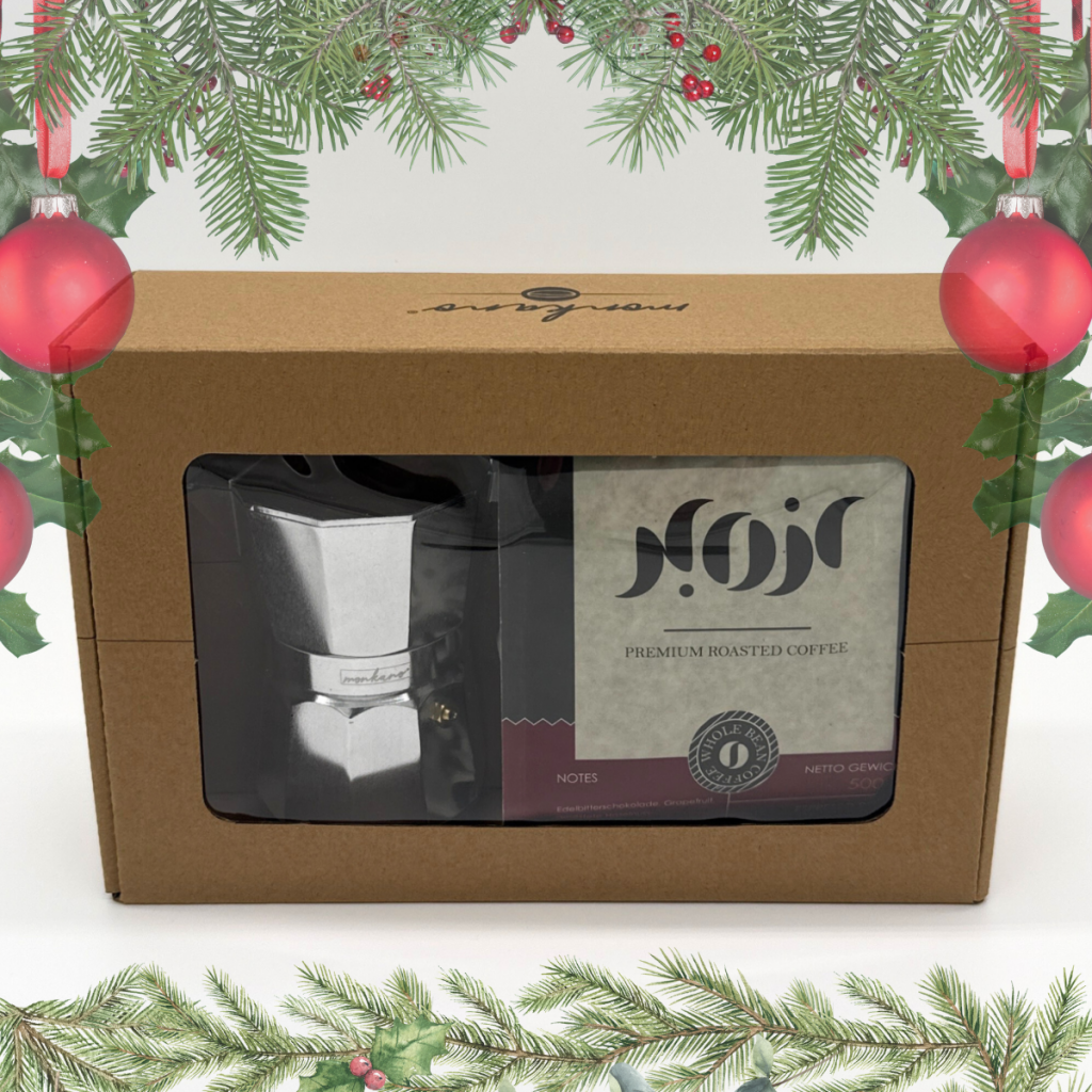 Tauchen Sie ein in den Zauber italienischer Kaffee- und Weihnachtsmomente mit unserem X-MAS Bundle: Das elegante Monkano Herdkännchen „Neapel“ (für 3 Tassen) trifft auf die exklusive Espressoröstung Noir Velvet oder Noir Delight. Beides vereint sich zu einem Geschenk, das Stil, Genuss und Wärme ausstrahlt – ideal für die besinnliche Jahreszeit.